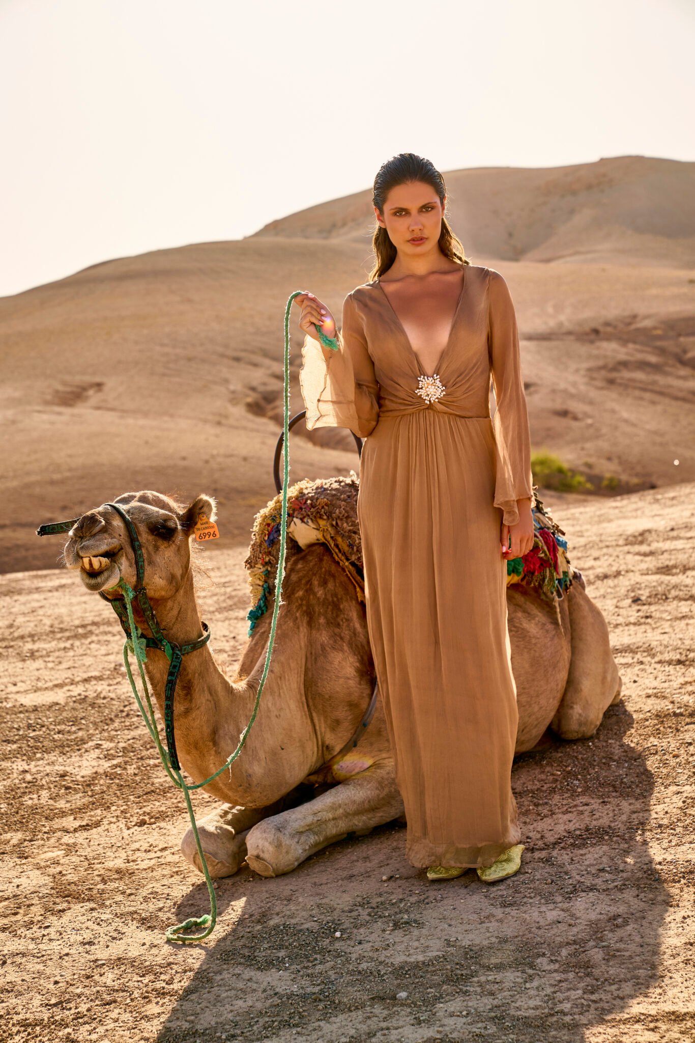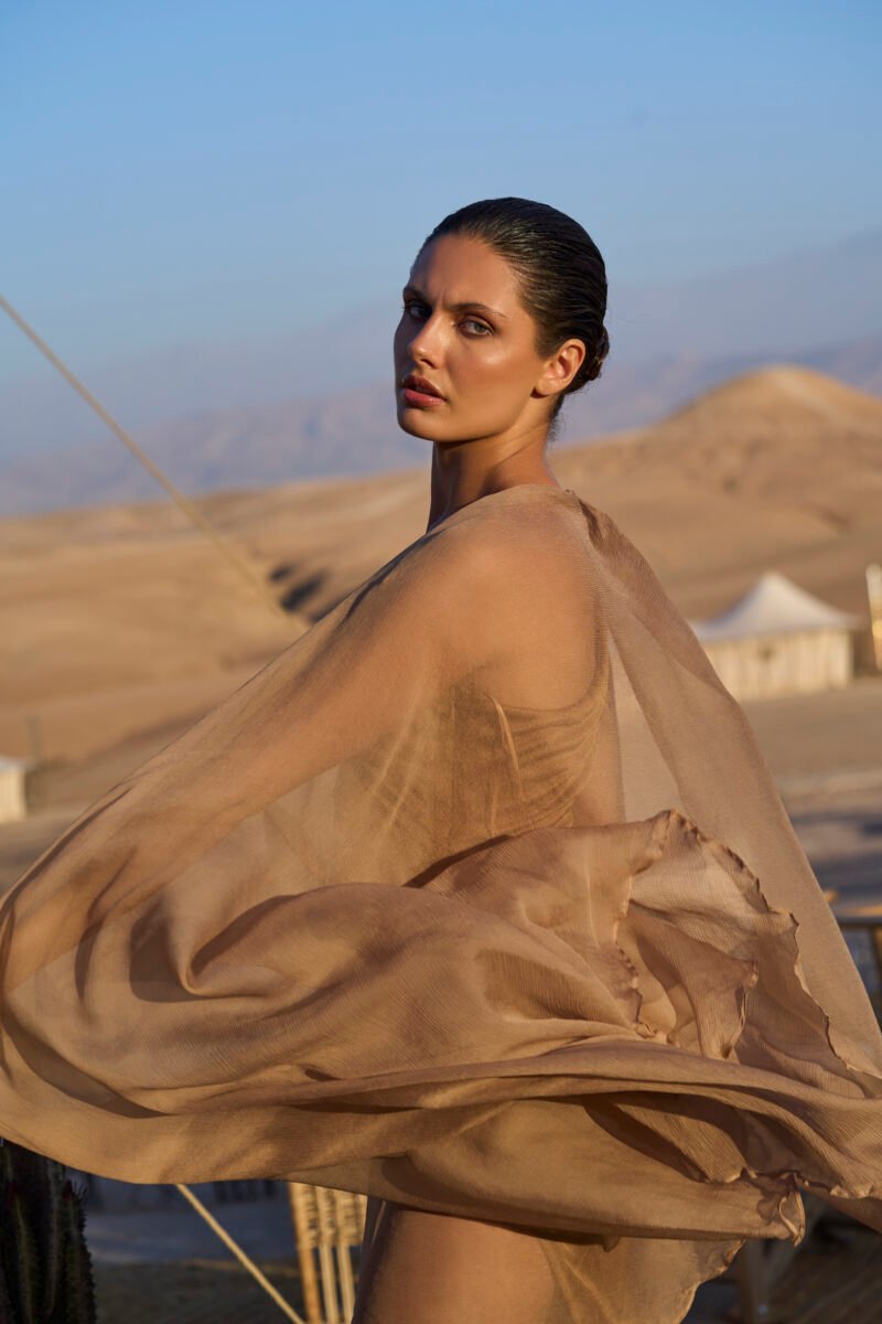 Toda colección nace de un impulso. En este caso, no fue una silueta ni un color, sino una sensación. Lo exótico y lo místico de Marruecos operaron como un primer llamado: la vastedad del desierto, su silencio denso, la manera en que la luz transforma la materia a lo largo del día.