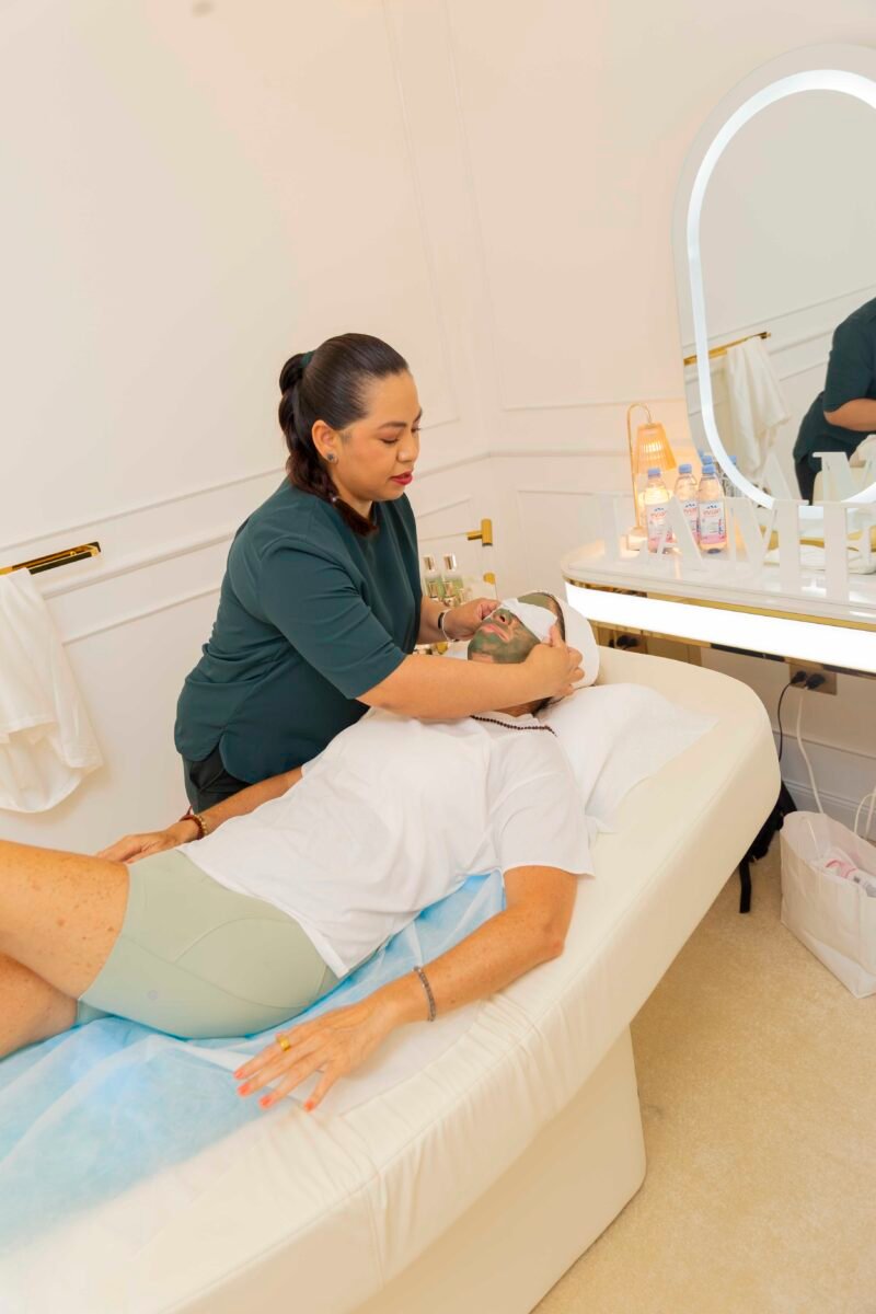 El momento culminante no fue una fotografía sino un protocolo: el facial de lujo desarrollado junto a La Mer sobre las nuevas camillas acuáticas y el Ritual de Hidroterapia Sensorial Restaurativa. Allí, la tecnología dejó de ser argumento para convertirse en atmósfera funcional. Movimiento marino, descarga muscular, pausa mental. Sin retórica mística.