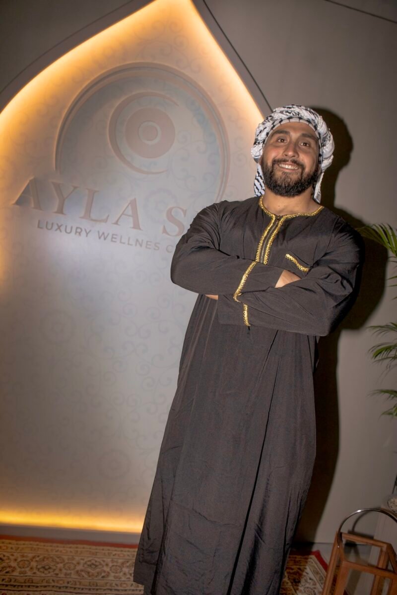 Desde el primer gesto, la experiencia estuvo cuidadosamente orquestada. El unboxing —caja personalizada, invitación titulada Agrabah, tarjeta de agradecimiento, stirnband intervenido, vela, amuleto turco y canje AYLA— funcionó como un preámbulo sensorial. No eran objetos, sino símbolos. Pequeñas claves que anticipaban lo que vendría: un espacio donde cada detalle está pensado para detener el tiempo y afinar la percepción.