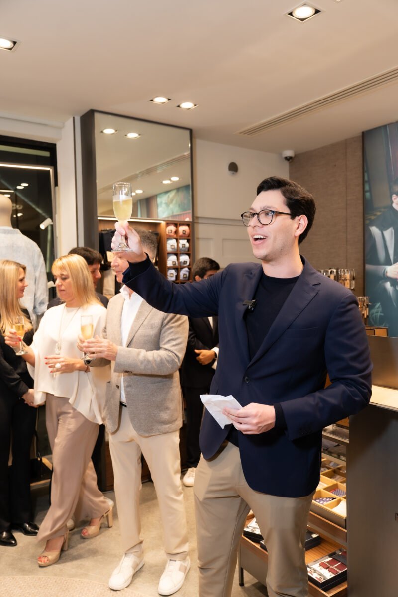 El interior combina la calidez de la madera con la precisión de la geometría minimalista, creando una atmósfera que invita a recorrer la colección con calma. Los trajes y camisas, confeccionados con fibras orgánicas y textiles certificados, se presentan como piezas de una narrativa que une innovación, sostenibilidad y elegancia. En cada detalle se percibe la intención de la marca: acompañar al hombre moderno desde la mañana hasta el último compromiso de la noche, sin perder ni un ápice de sofisticación.