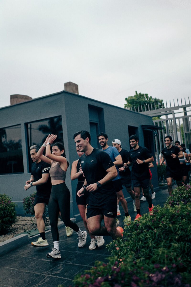 El running club, los entrenamientos colectivos y los eventos no están diseñados solo para mejorar marcas o resistencia. Están pensados para crear vínculos. Para que la gente llegue antes, se quede después, converse, vuelva. Hay una coreografía invisible en lo que ocurre antes, durante y después de cada sesión: encuentros que se repiten, complicidades que se forman, amistades que nacen sudando.