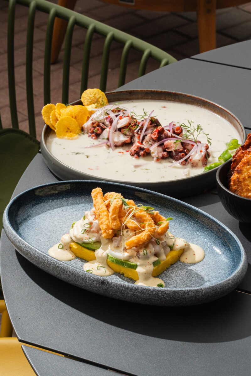Su propuesta gastronómica combina influencias mediterráneas, nikkei y marinas con un punto en común que atraviesa toda la carta. Producto fresco del mar y platos pensados para compartirse. Ceviches, causas, leche de tigre, makis y baos aparecen como parte de una experiencia que invita a probar más de una cosa y a extender la conversación.