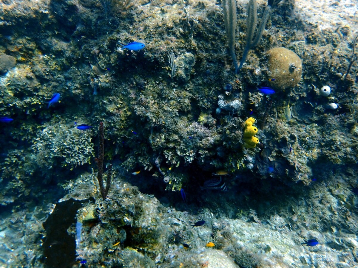 El arrecife aparece con claridad. Corales, bancos de peces, movimientos constantes. Es común ver peces loro, cirujanos, ángeles, incluso rayas o algún tiburón nodriza a la distancia. No es un espectáculo armado, es un ecosistema activo en el que tú estás entrando por un momento.