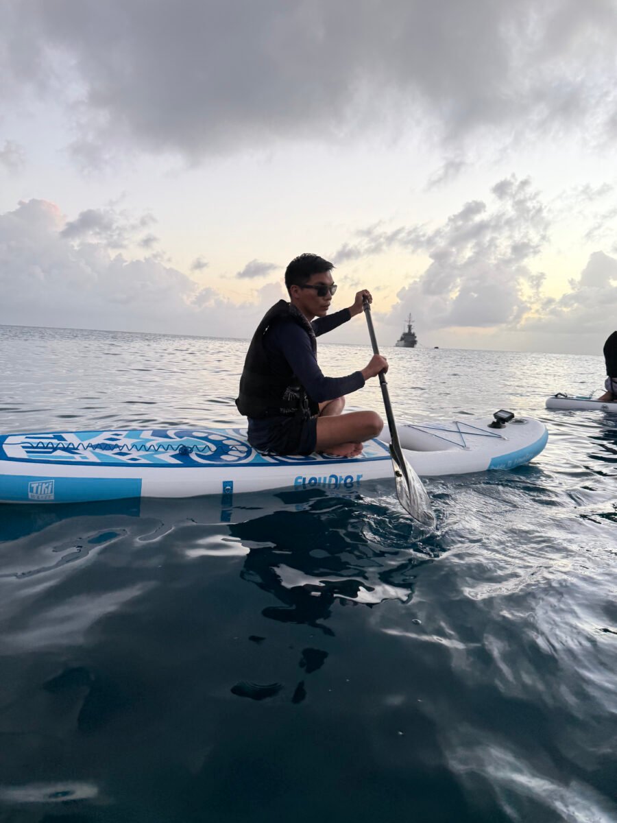 Te recuestas sobre la tabla casi por inercia. El cuerpo ya entendió el ritmo. Arriba, el cielo. Abajo, el movimiento constante del agua. En medio, una música que no busca protagonismo, pero termina sosteniendo todo. Ellos lo saben. La experiencia no es solo remar. Es lo que queda cuando todo baja de intensidad. Cuando la isla deja de mostrarse y empieza, por fin, a sentirse.