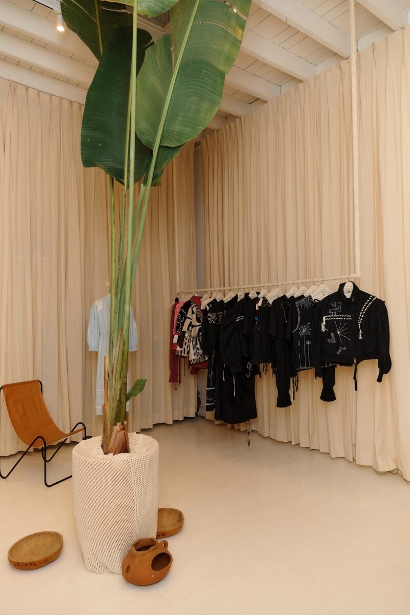La reapertura fue también escenario para el estreno de dos colecciones que condensan la esencia de la marca. Spring Summer 2025 presentó doce looks en algodón pima con bordados a mano que evocan la travesía de los migrantes y el poder de las raíces como motor de futuro. Mientras tanto, Fall Winter 2025 se inspiró en los petroglifos de Toro Muerto, explorando la dualidad entre luz y sombra, lo sagrado y lo terrenal, desde una mirada textil contemporánea.