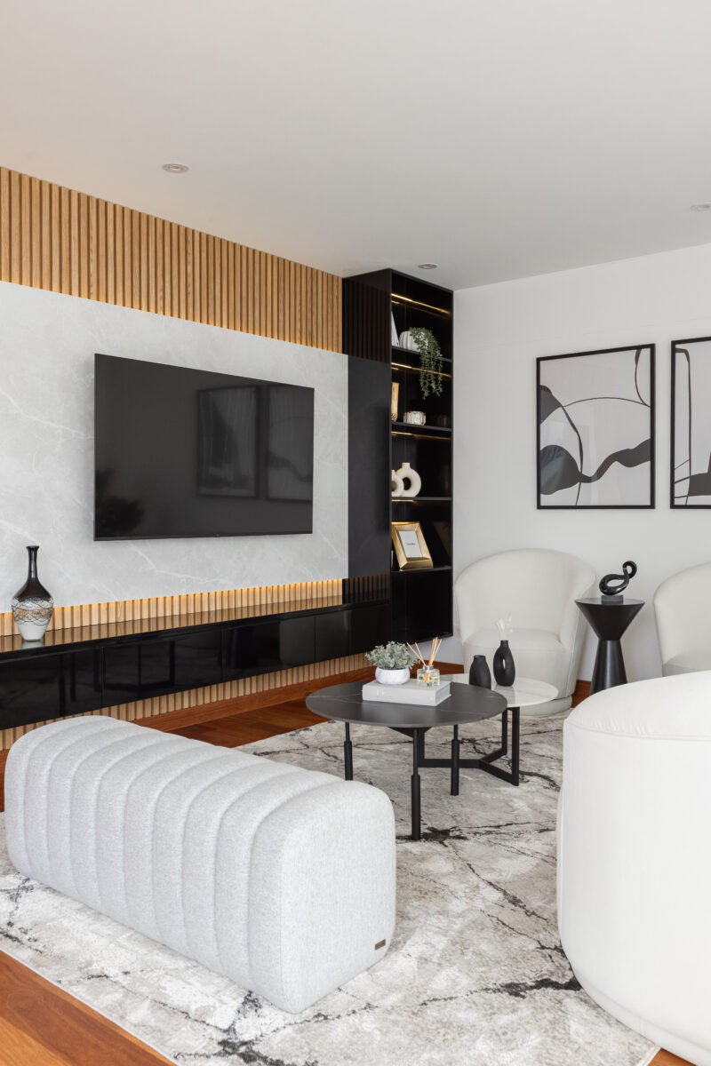 La contemporaneidad, en este caso, no se traduce en modas, sino en una visión actual del habitar: espacios honestos, equilibrados, donde la calidad se percibe en el detalle y en el paso del tiempo. La luz no dramatiza; revela. Los materiales no compiten; dialogan. El espacio respira.
