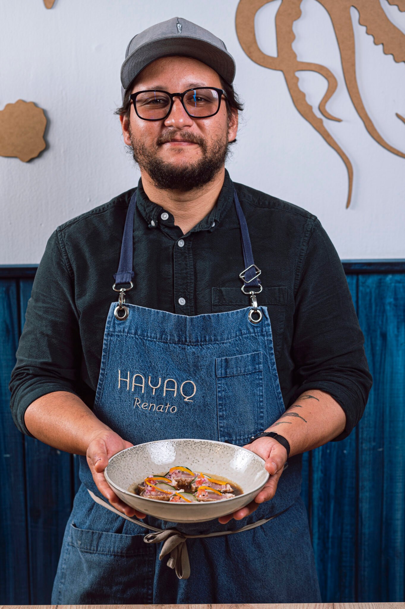 Tras una remodelación integral, Hayaq presenta un local con mayor carácter visual y personalidad estética. Su fachada ha sido intervenida por el artista urbano Conrad Flórez, quien ha creado un mural que fusiona iconografía marina con elementos del mundo vegetal y culinario, en una obra que celebra el vínculo entre el mar peruano y la tierra.