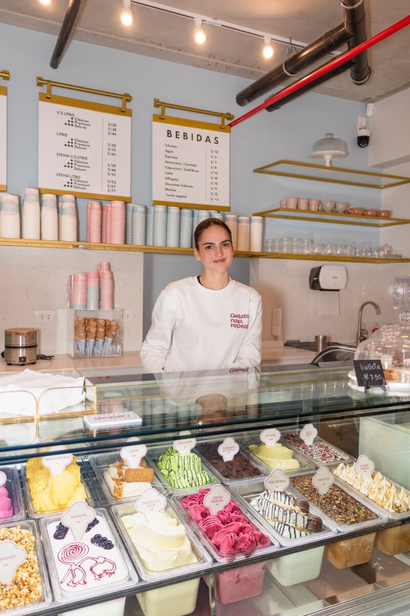 Entrar a una tienda Raggelato es experimentar un mundo cuidadosamente diseñado. Los colores, la luz, la música y la presentación del helado se combinan para crear un espacio donde cada detalle comunica algo más que sabor: transmite visión, inspiración y cuidado artesanal. “Soy bien visual, me fijo en todo: en los ingredientes, en la presentación del helado, en la música, en la luz… para mí todo eso también comunica. Quiero que cuando alguien entre, sienta que está en un lugar pensado con cariño”, explica Majo.