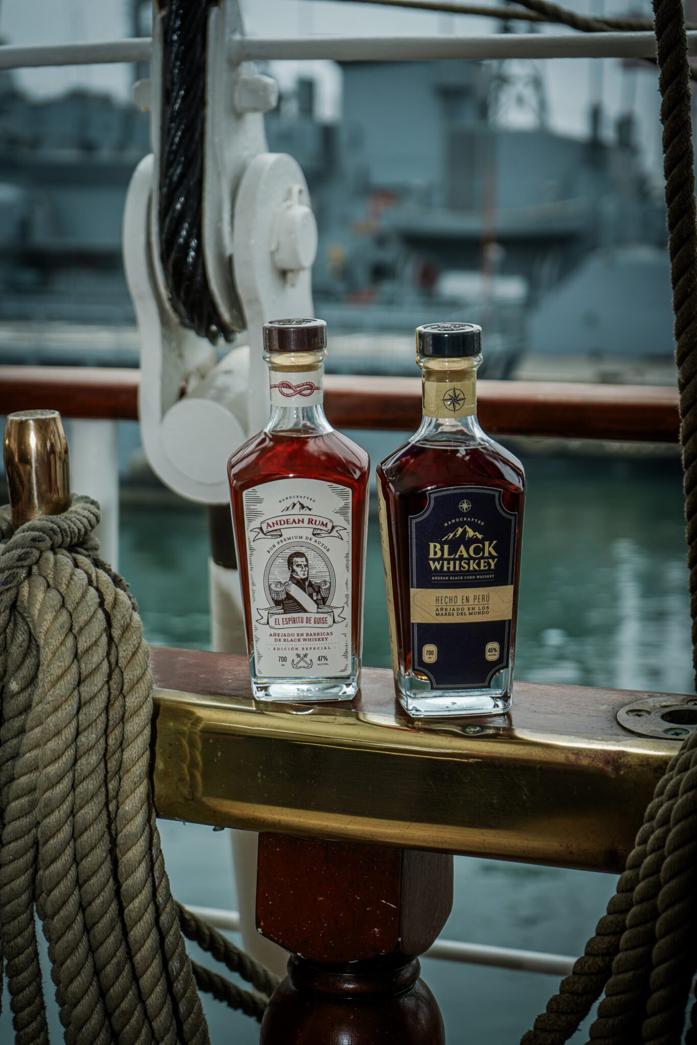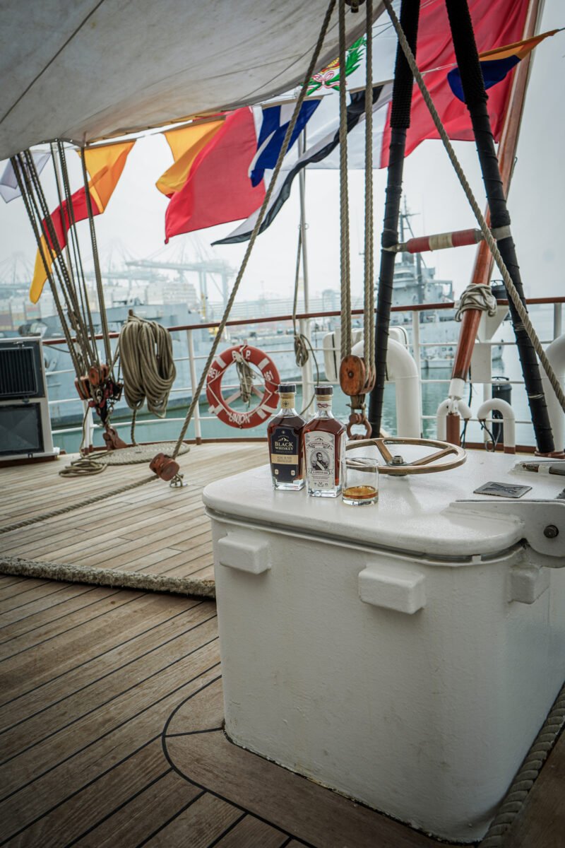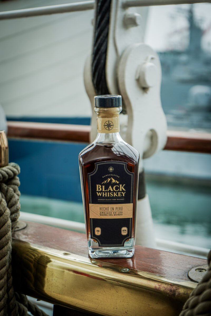 Durante 178 días, a bordo del B.A.P. Unión, buque insignia de la Escuela Naval de la Marina de Guerra del Perú, las barricas del Black Whiskey viajaron expuestas en la cubierta superior. Lluvia, calor, salitre y balance constante hicieron su trabajo silencioso. Diez países, once puertos, 16,435 millas náuticas: cifras que no buscan impresionar, sino explicar una alquimia.