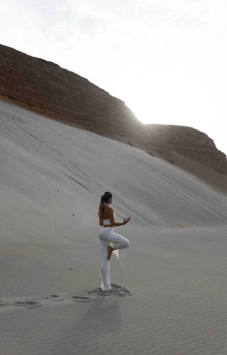 Antes de convertirse en marca , Ohmma nació como una necesidad de respirar en medio del ruido. Mariana no habla de “peace and love” como consigna; habla de estar presente como si fuera una urgencia contemporánea. Durante once años el yoga fue su disciplina privada, una conversación silenciosa que comenzó en el norte, en Máncora, dentro del hotel boutique Hotel KICHIC, donde un profesor le mostró que flexibilidad no es lo mismo que conciencia.
