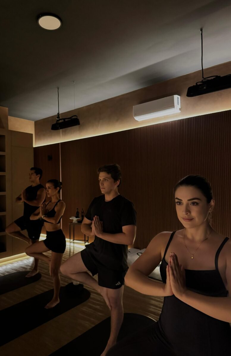 En Ohmma se practican también hatha y vinyasa —permanencia y fluidez—, hot yoga con luz infrarroja en una sala que alcanza los 38 grados, yoga prenatal hasta los ocho meses y medio, e incluso modalidad para adultos mayores o personas en silla de ruedas. La oferta no es acumulación de tendencias; es una estrategia de comunidad. La clase puede reunir a una embarazada, a un ejecutivo estresado y a una joven que busca fuerza. La consigna es la misma: no competir, no compararse, escuchar.