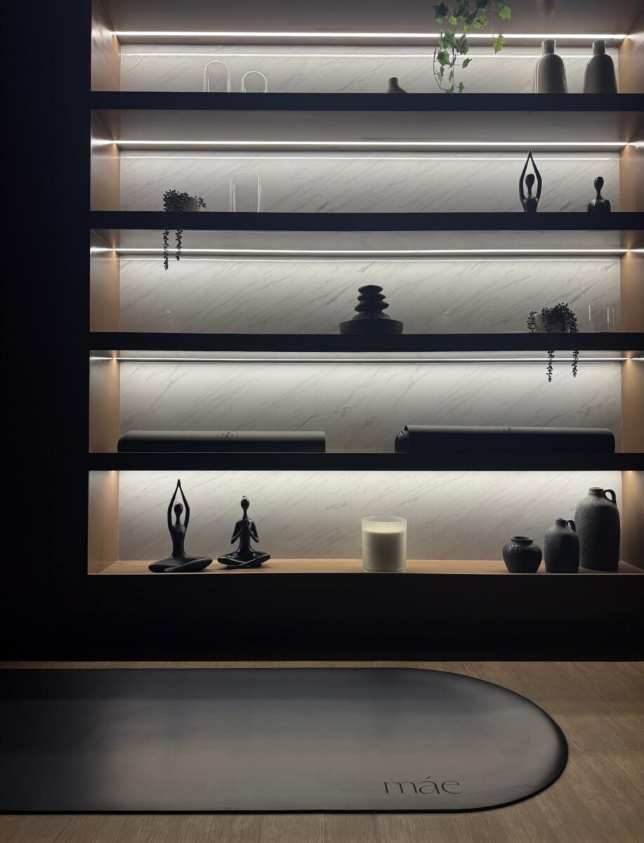 Ohmma Yoga está en El Golf porque Mariana necesitaba coherencia. Creció ahí. Conoce sus reglas, su seguridad, su ritmo residencial que ahora convive con oficinas y nuevos negocios. Pero el estudio no se sostiene solo en ubicación estratégica. Se sostiene en una arquitectura pensada como extensión de su filosofía.