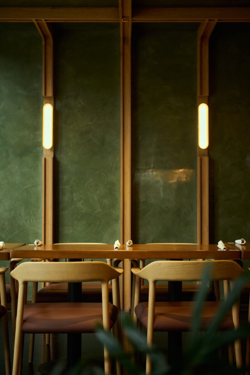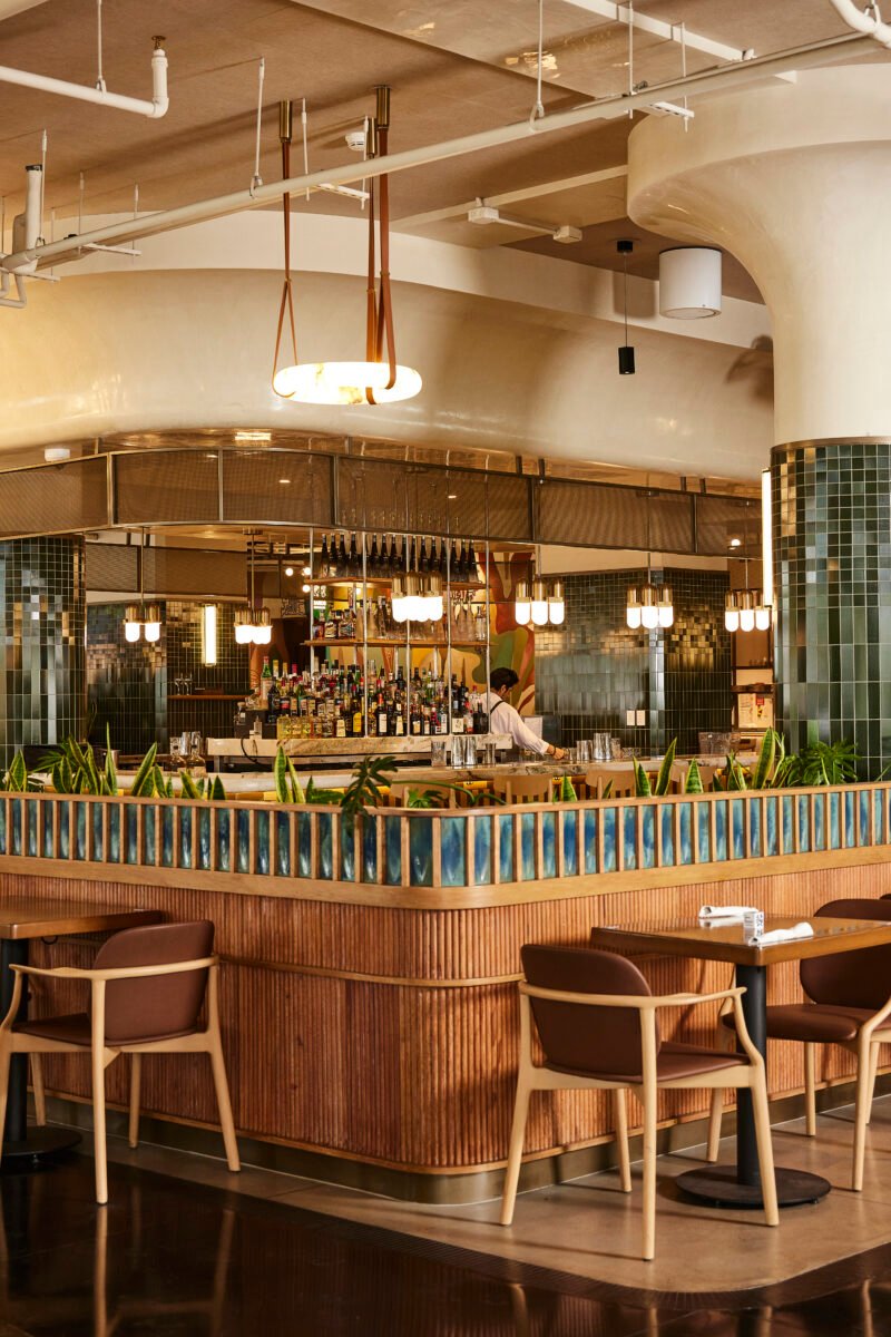 El proyecto fue desarrollado por AvroKO, estudio internacional con presencia en Nueva York, Chicago, Los Ángeles, Beijing y Seúl. La arquitectura no compite con la cocina; la enmarca. El espacio es amplio, cómodo, diseñado para transitar distintos ritmos sin perder identidad.