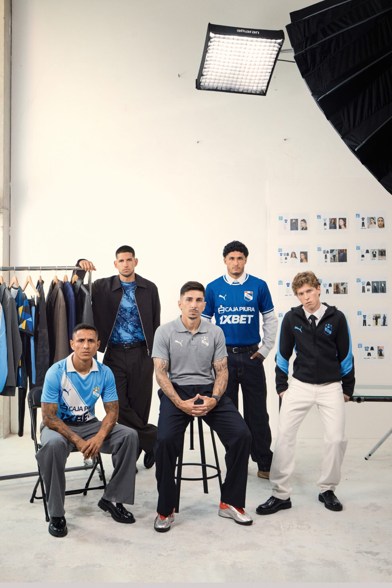 El gesto de llevar a los jugadores a un estudio no es anecdótico. Cambiar el césped por un espacio controlado altera la lectura completa de la indumentaria. Ahí, sin la urgencia del juego, cada prenda tiene que sostenerse por sí sola, sin narrativa deportiva que la respalde.