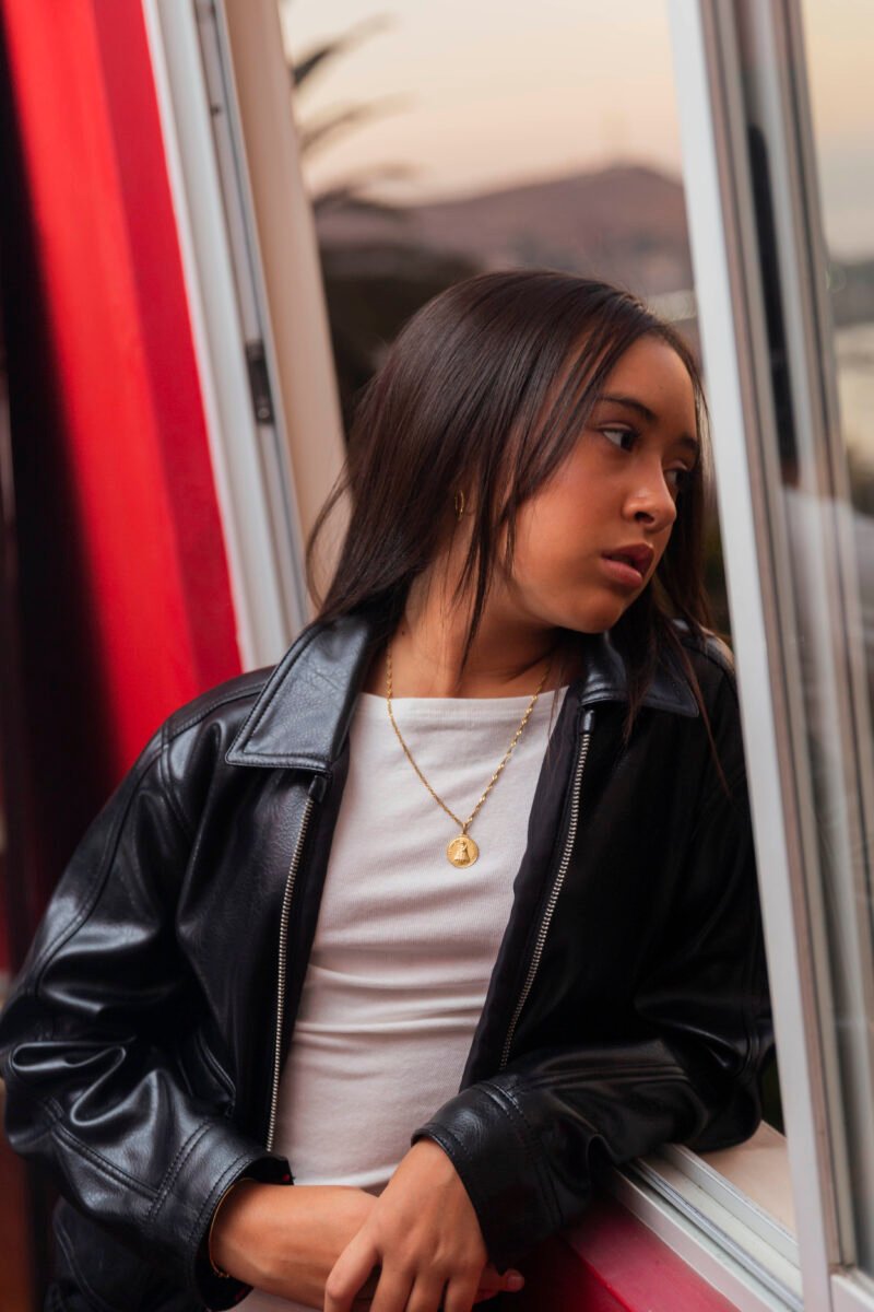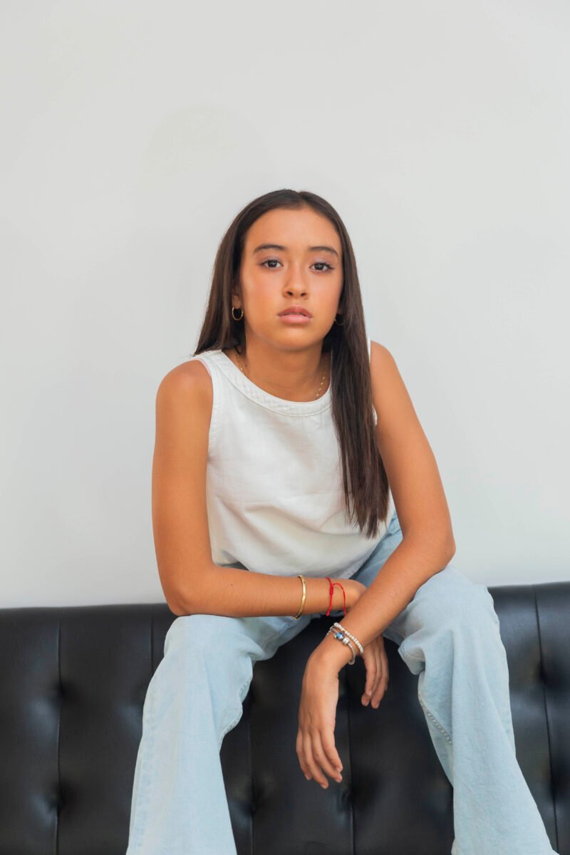 La estructura que sostiene su rutina no es rígida, pero sí constante. Hay horarios, pausas, clases, ensayos. El colegio no se negocia. Tampoco el tiempo con amigas ni los espacios que no tienen relación con la moda. El modelaje aparece como una parte importante, pero no como lo único que define quién es.