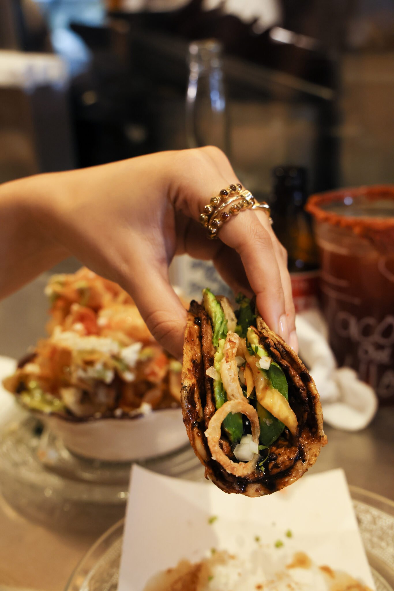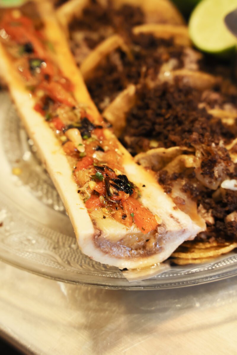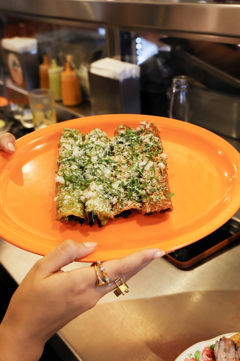 Probamos tacos, flautas y tostadas, todos con una ejecución consistente: tortillas bien trabajadas, carnes jugosas, equilibrio entre grasa, acidez y crocancia. Las flautas llegan doradas, sin exceso, y las tostadas funcionan como bocados directos, contundentes, pensados para disfrutarse sin distracciones.